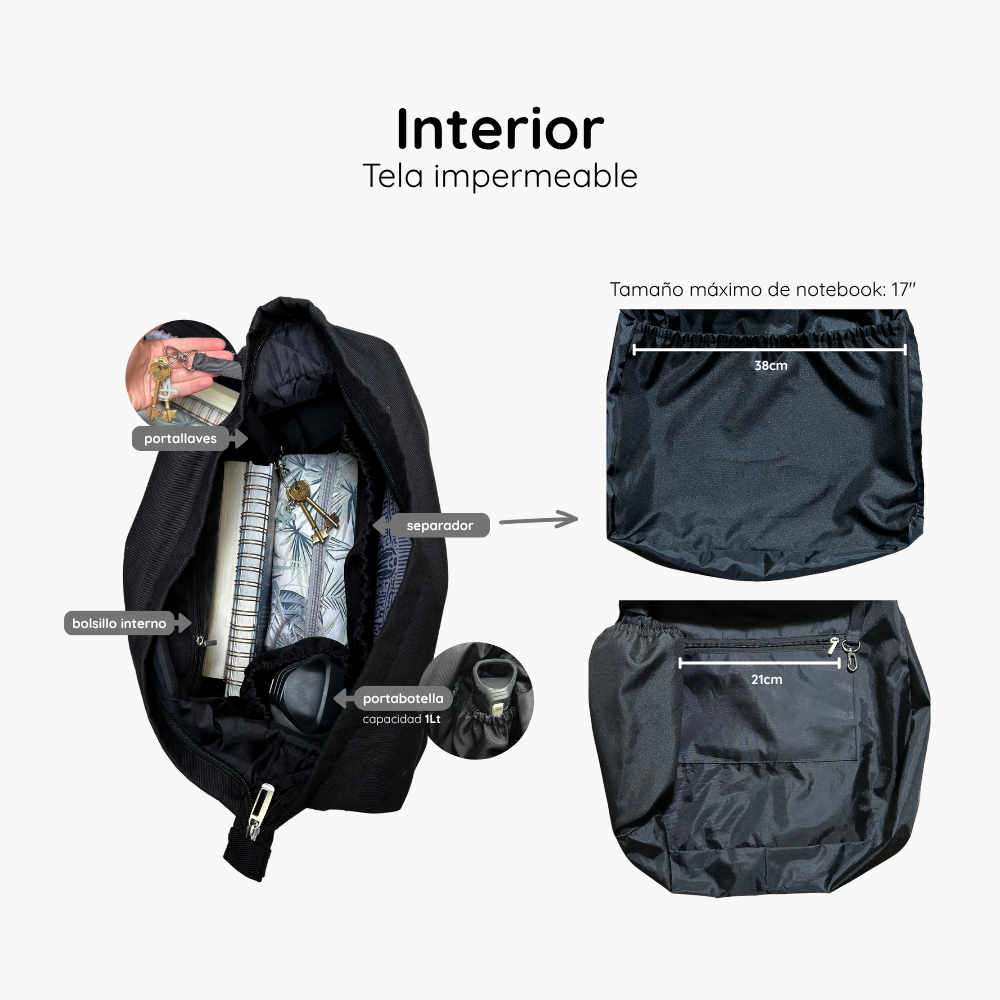 Este bolso cuenta con gran capacidad + cierre externo para mayor seguridad y varios compartimientos pensados para mantener todo en orden: